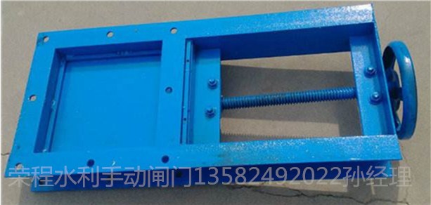 手動閘門主要由框架、閘板、絲桿、螺母等零件構(gòu)成,用手轉(zhuǎn)動手輪使絲桿帶著絲桿螺母和閘板沿水平方向往復(fù)運(yùn)動,達(dá)到閘門的啟閉目的。