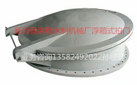浮箱拍門具有流道正向單向開啟和反向關閉的作用。配重式拍門借助于配重的平衡作用,在水流的作用下使門頁自動開啟或關閉,或稍加外力作用使門頁開啟或關閉;浮箱式拍門則利用門頁在水中的浮力,在水流的作用下使門頁開啟或關閉。浮箱拍門適用于給排水及污水處理工程的各種管道和水渠道作溢流、止回之用,亦可用作各種豎井井蓋,它僅用于單向水流的圓形出水口。