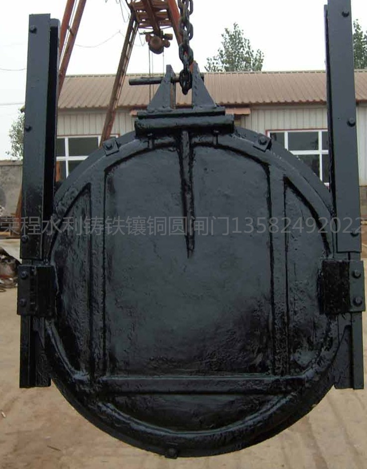 鑄鐵圓閘門是鑄鐵閘門中的一個規格。閘門有方形、圓形,扇形,拱形等。鑄鐵閘門一般由門葉和門框兩部分組成,門體和門框的材料采用鑄鐵,一般整體鑄造和加工。為保證止水效果,止水面可以加以鑲銅合金或不銹鋼等來增加其防腐能力。有特殊要求的地方還可以采用鎳鉻合金鑄鐵等耐腐蝕性更強的材料。根據客戶不同需要鑄造合適的閘門。