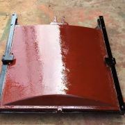 3、 澆注混凝土時,流進閘板、閘框、斜鐵、擋板間的灰漿應(yīng)完整斷根,以防止灰漿凝固后影響閘門啟閉。